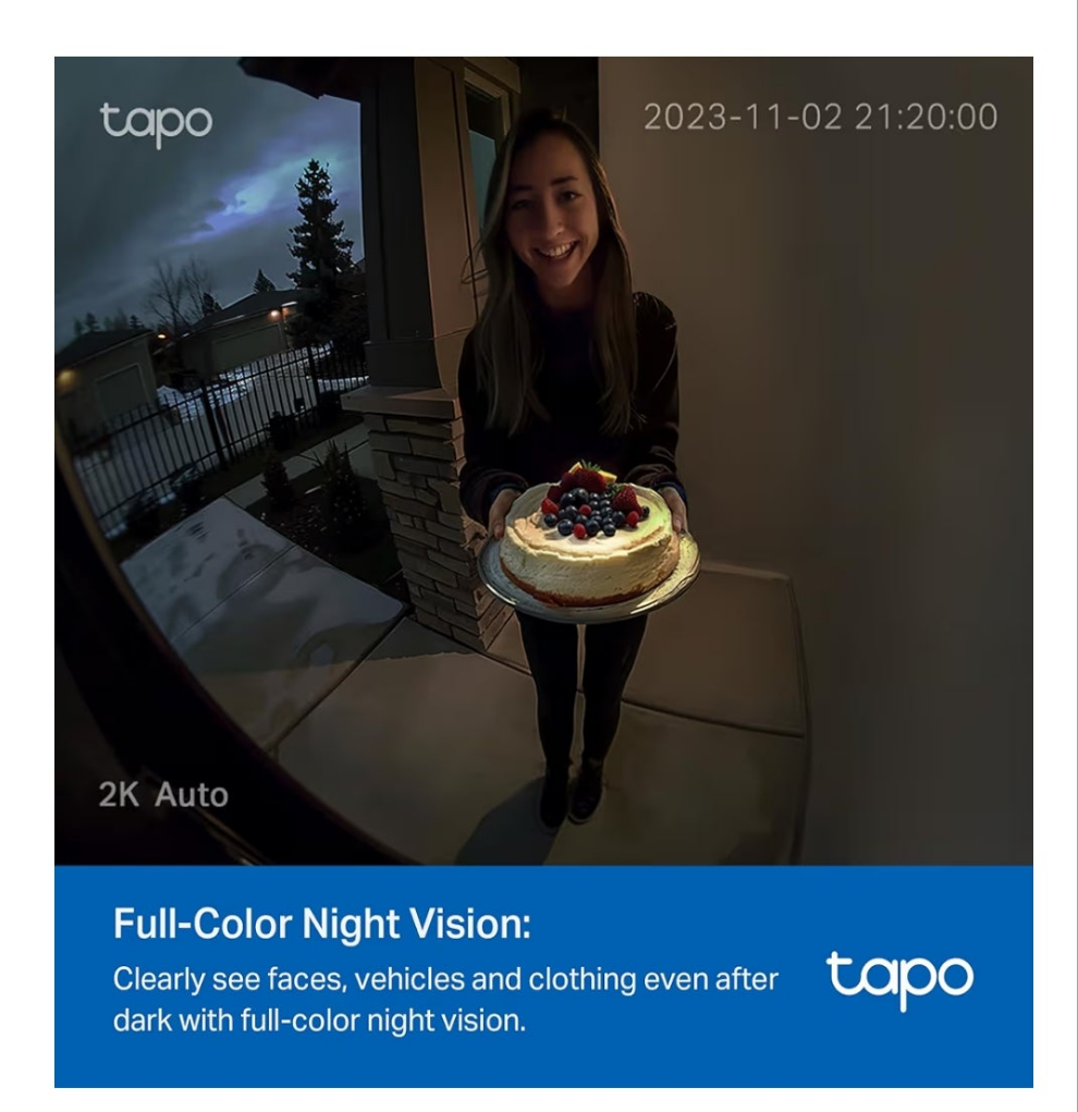 【Full Color Night Vision with Spotlight】The Tapo Smart Doorbell provides added security 24/7. The included spotlight activates when motion is detected (brightness can be adjusted) for added deterrence. The spotlight also allows for full color night vision ensuring enhanced visibility and better security even in low-light conditions.