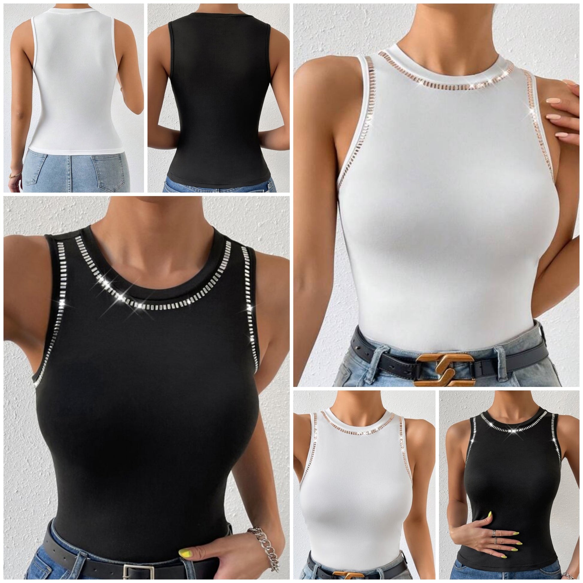 Solid Rhinestone Detail Tank Top COCOMONEY