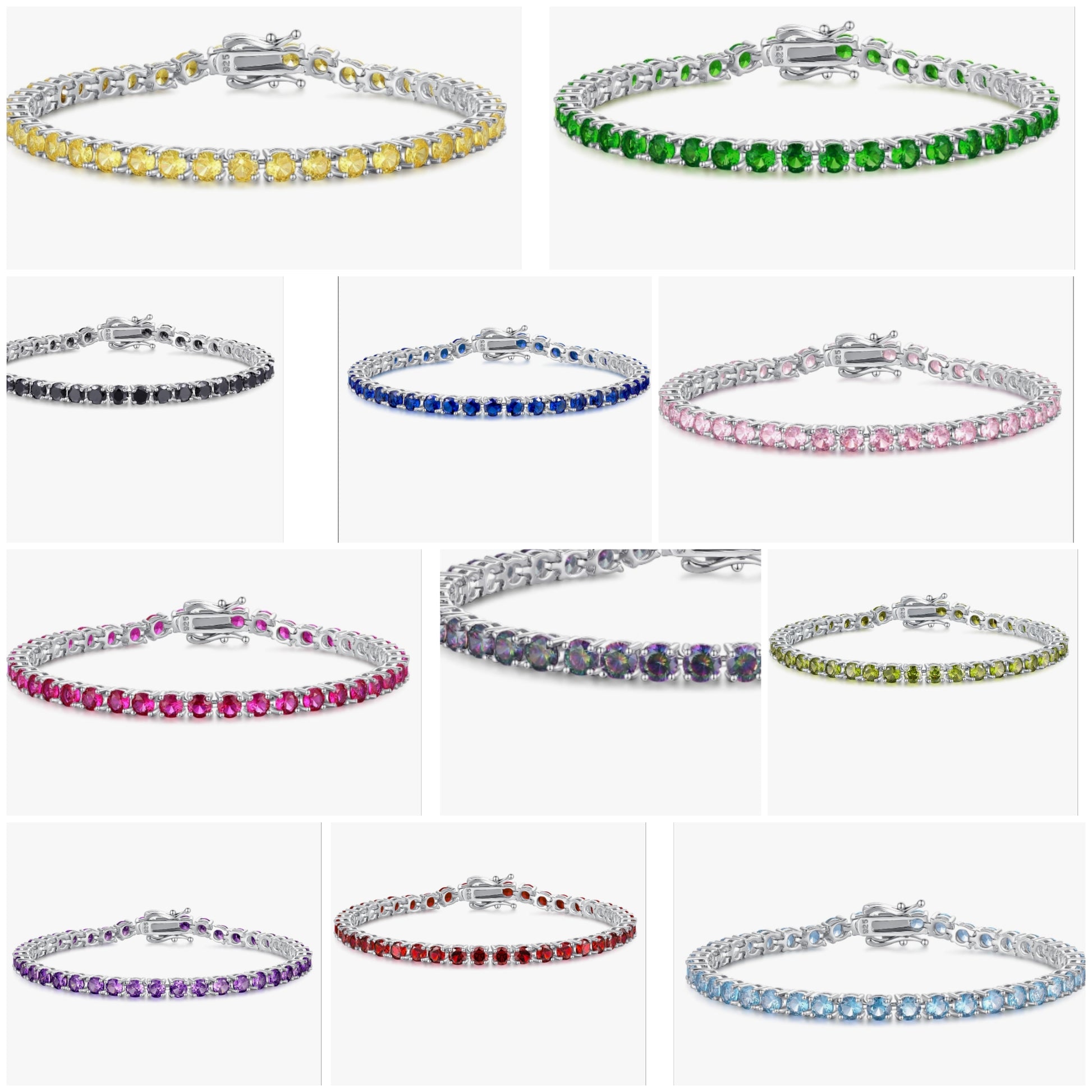 Sterling Silver Gemstone Tennis Bracelets Fine Jewelry Wedding Bridal Prom Birthday Gift for Women Her, Length 7.9 Inch Width 4mm