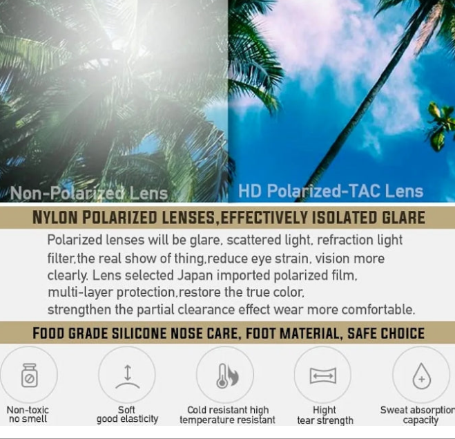 COCOMONEY POLARIZED LENSES- Advantage-Clear vision, especially in bright light;increased contrast and minimal color distortion;reduced glare and reflection;reduced eye strain.