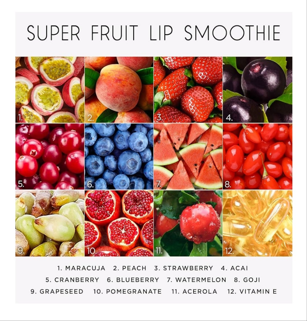 hyaluronic acid & 10+ superfruit complex for smoother, nourished, more hydrated looking lips & cheeks