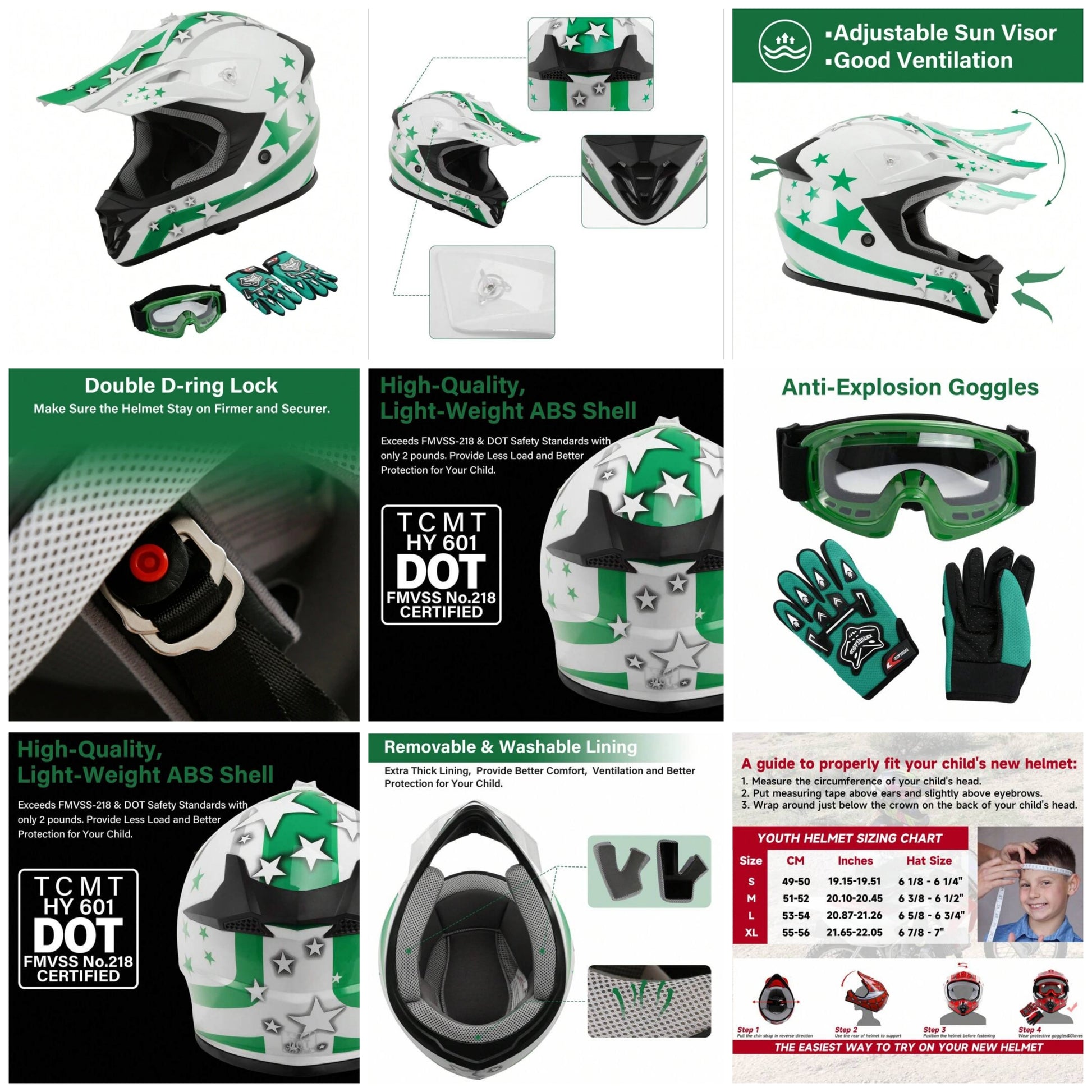 TCMT Dot Youth & Kids Motorcycle Off-Road Helmet Full Face Motocross Street Dirt Bike Mountain Bike BMX MX ATV Helmet+Goggles+Gloves