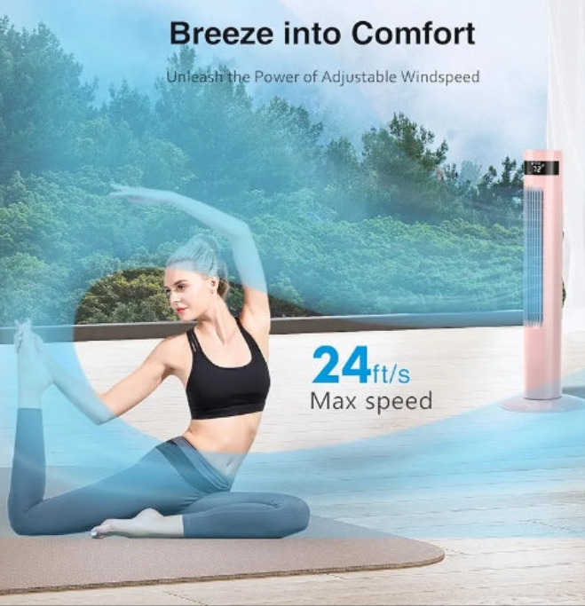 Tower Fan with Remote Control, Standing Fan for Office, Oscillating Fan for Home with Children/Pets/Elders,Time Settings,LCD Display,45W,Oscillation, 36" Pink or White