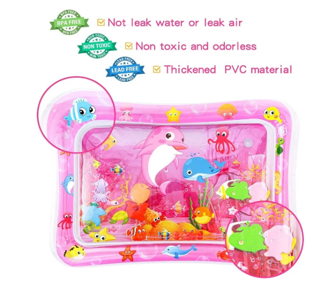 【High Quality and Strict Inspection】 Our baby water play mats are made of heavy PVC material which is strong, durable, non-toxic and BPA free. Each baby water mat has passed a strict quality inspection before leaving factory to ensure that it will not leak water or leak air.