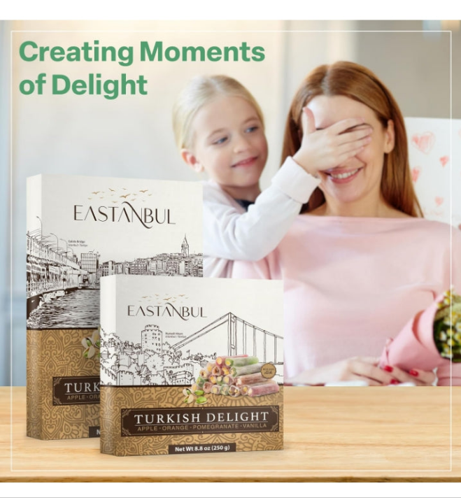 HEALTHY & PREMIUM INGREDIENTS: No Artificial coloring, Glucose, Corn Syrup, or Fructose. Our authentic Turkish Snack Box is vegan, gluten-free, and produced with natural, non-GMO ingredients. Moderately sweetened with top-notch quality beet sugar from the finest local providers from Turkey and made with natural Apple, Orange, Pomegranate, and Vanilla flavors. Each deserves a distinct appreciation. Generously contains 40% premium pistachios. Suitable for those watching their calorie intake