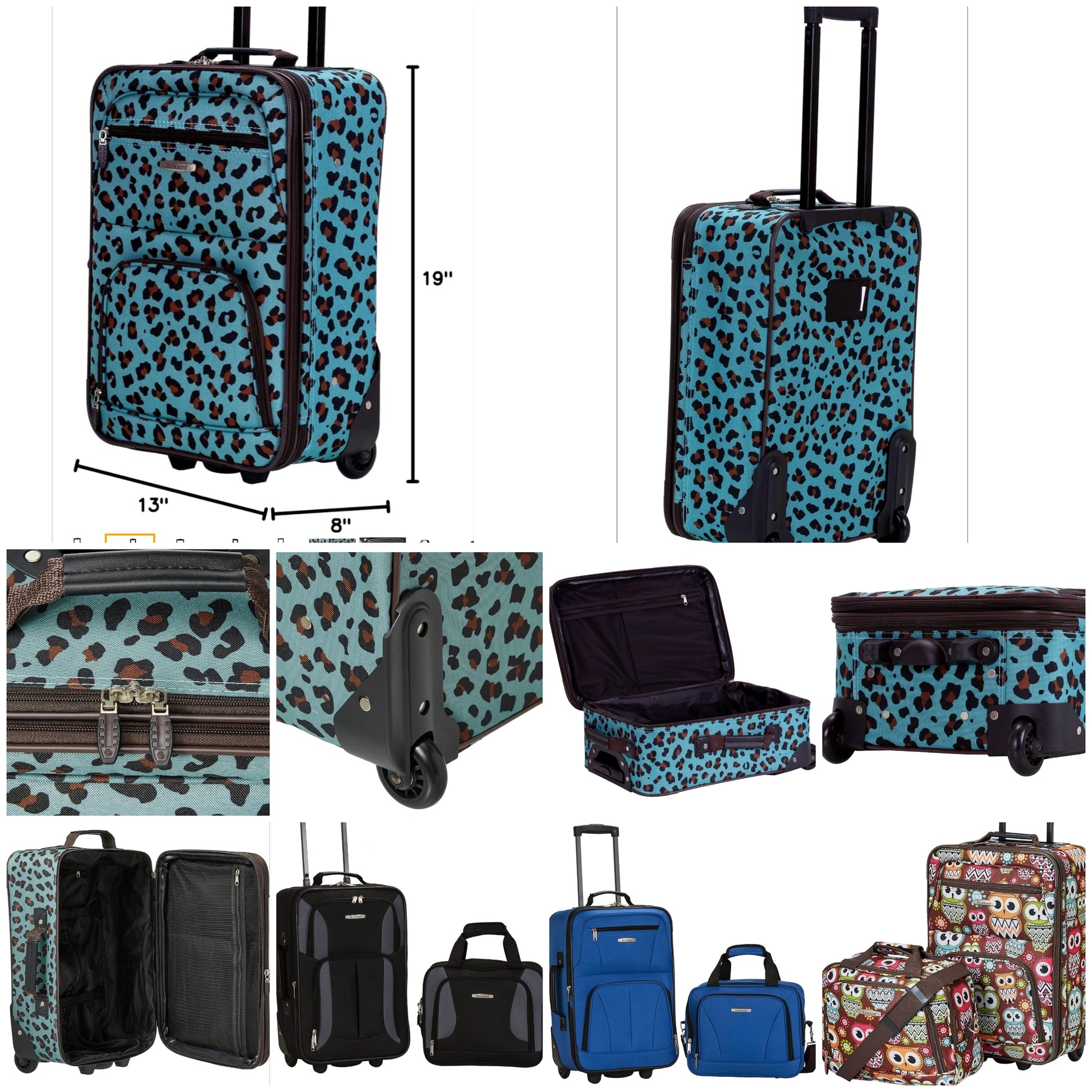 This beautiful deluxe 2-piece expandable luggage set is manufactured with a patented heavy duty eva-molded hi-count fabric. This set is perfect for the serious and experienced traveler. Manufactured with the very best heavy duty polyester and pvc backing, this luggage set is designed for the traveler on the go and comes with three expandable uprights and a flight tote bag. It comes packed with features including: an inside retractable handle, ez-roll in-line skate wheels, back zippered secured pockets, top and side comfort grip handle, stability bars at the bottom to avoid tilting, and locks and keys. Upright features include: clear in-line skate wheel system for smooth ride, push-button self-locking internally stored retractable handle system, ergonomic and comfortable padded top and side grip handles, two front full size zipper-secured pockets, and three internal organizational pockets for all your traveling needs. Each upright's interior is fully lined with a durable and elegantly imprinted lining and elegant silver pewter heavy duty industrial hardware. Carry-on flight tote bag features include: elegantly imprinted full interior lining, detachable and adjustable non-slip shoulder strap, spacious main compartment, and maximum strength industrial hardware. Carry-on upright: 20 inches high x 13 inches wide x 7.5 inches (with wheels) expandable to 10 inches deep and weighs 6 pounds. Carry-on flight tote bag: 14 inches wide x 11 inches high x 5 inches deep and weighs 1 pounds.