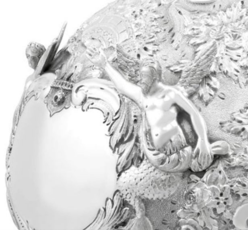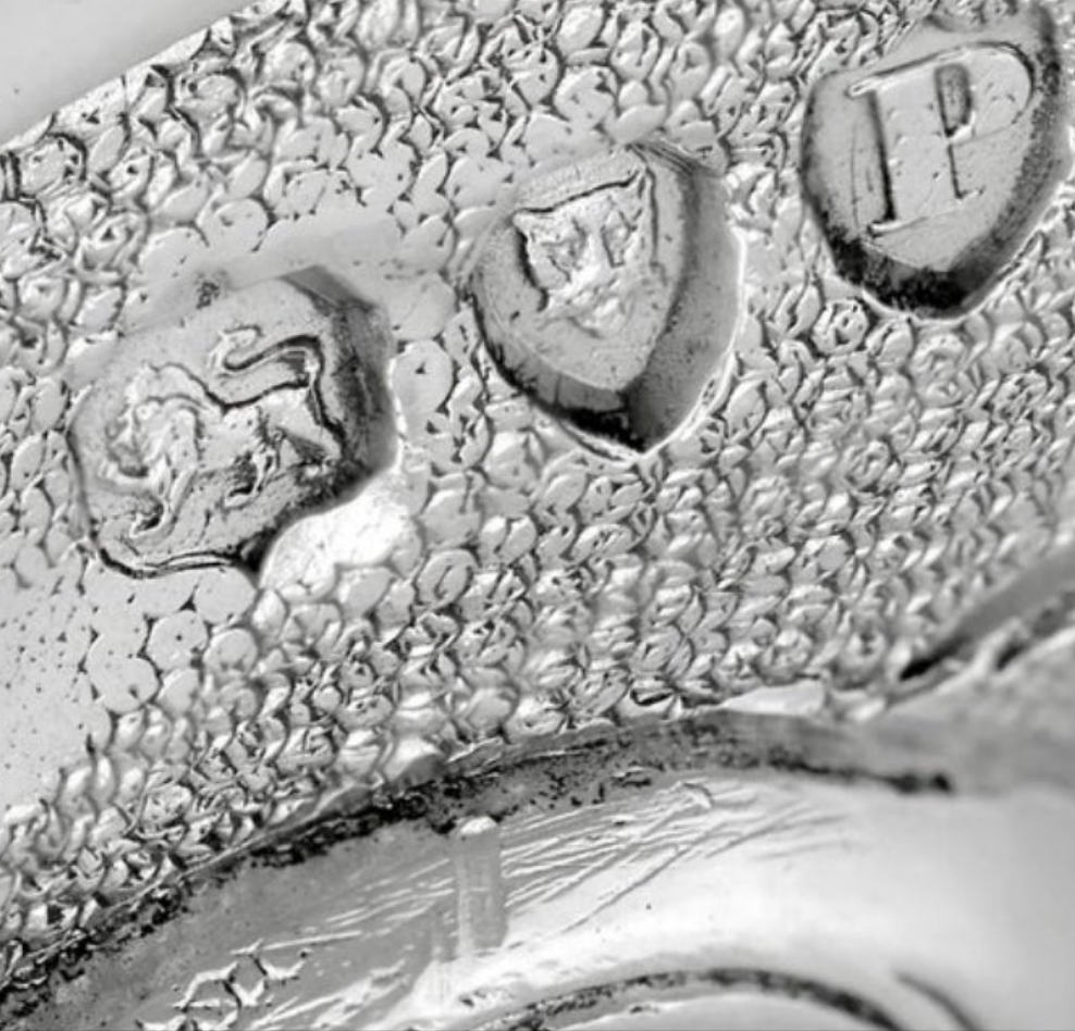Full hallmarks struck to the surface of the jug, in addition to part hallmarks to the interior of the cover and handle mechanism are all very clear; the hallmarks are struck deeply due to the exceptional gauge of silver.