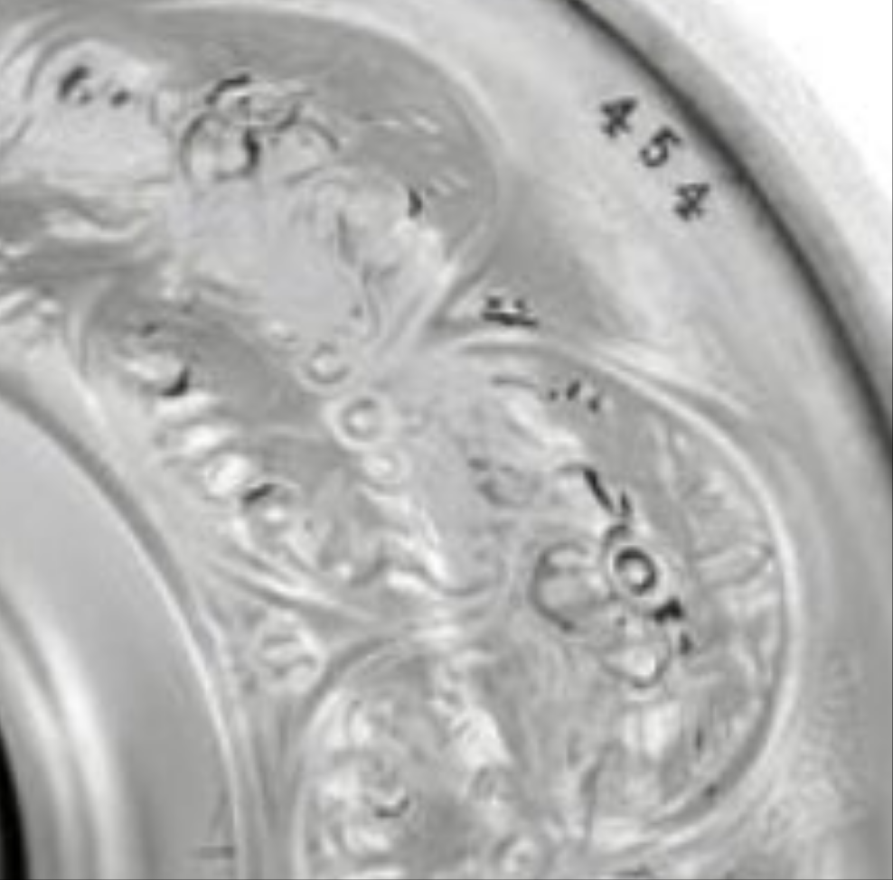 The cast and chased decoration is all very sharp and the bright cut engraved crest is very crisp.