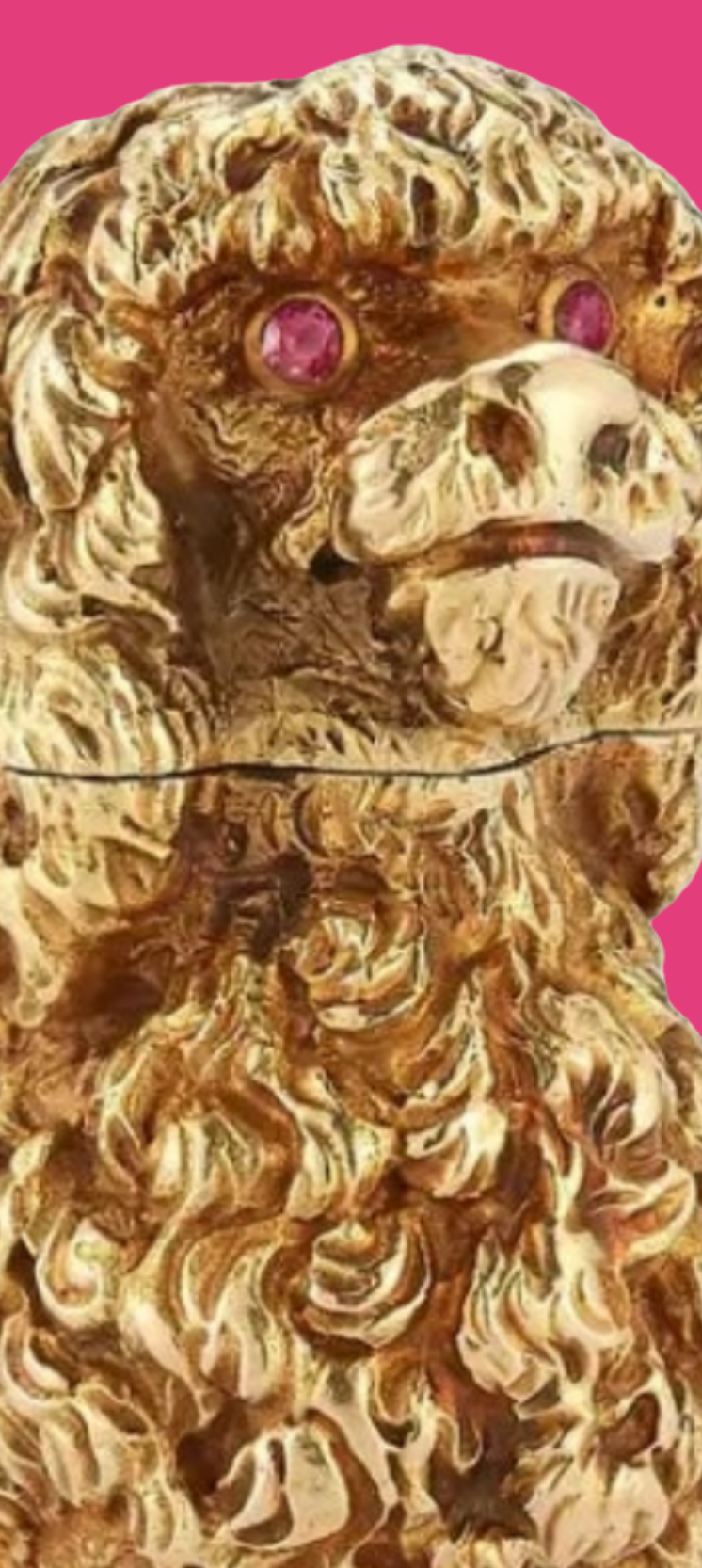 COCOMONEY.STORE,,, AUTHENTIC VERIFIED INSPECED GUARANTEED,,,,Schlumberger Gold Poodle Lighter , 18k carved gold with ruby eyes .Circa 1950