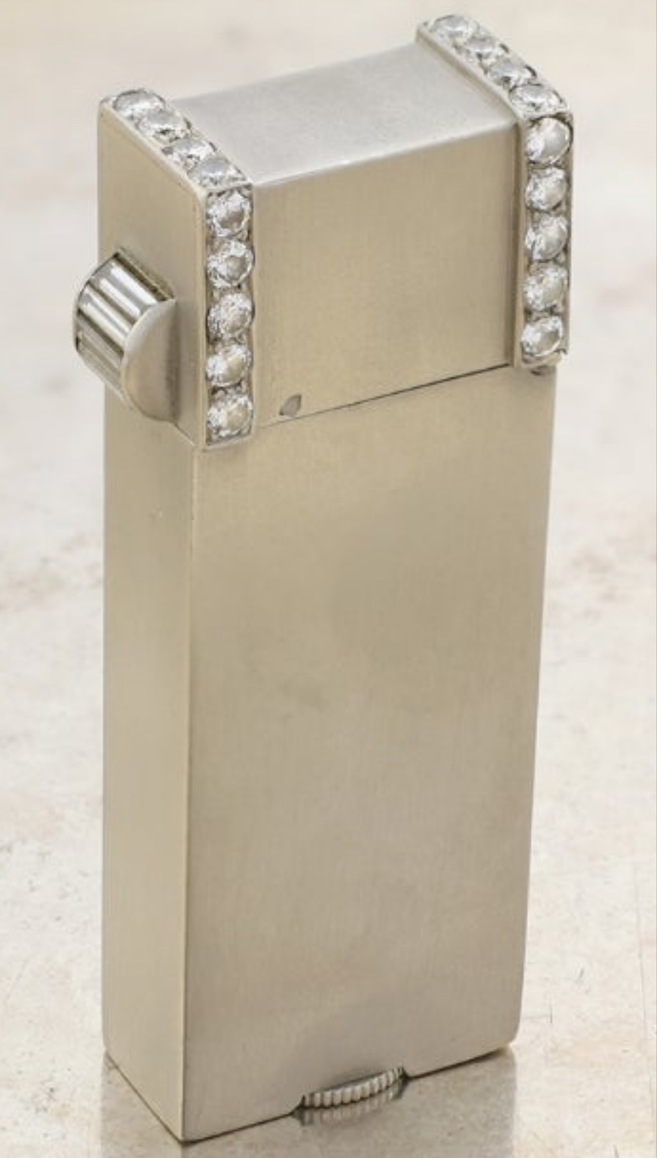 Ostertag Platinum and Diamond Lighter 28 circular and 5 baguette cuts with approximate total weight of 1.50 carats of diamonds circa 1930s