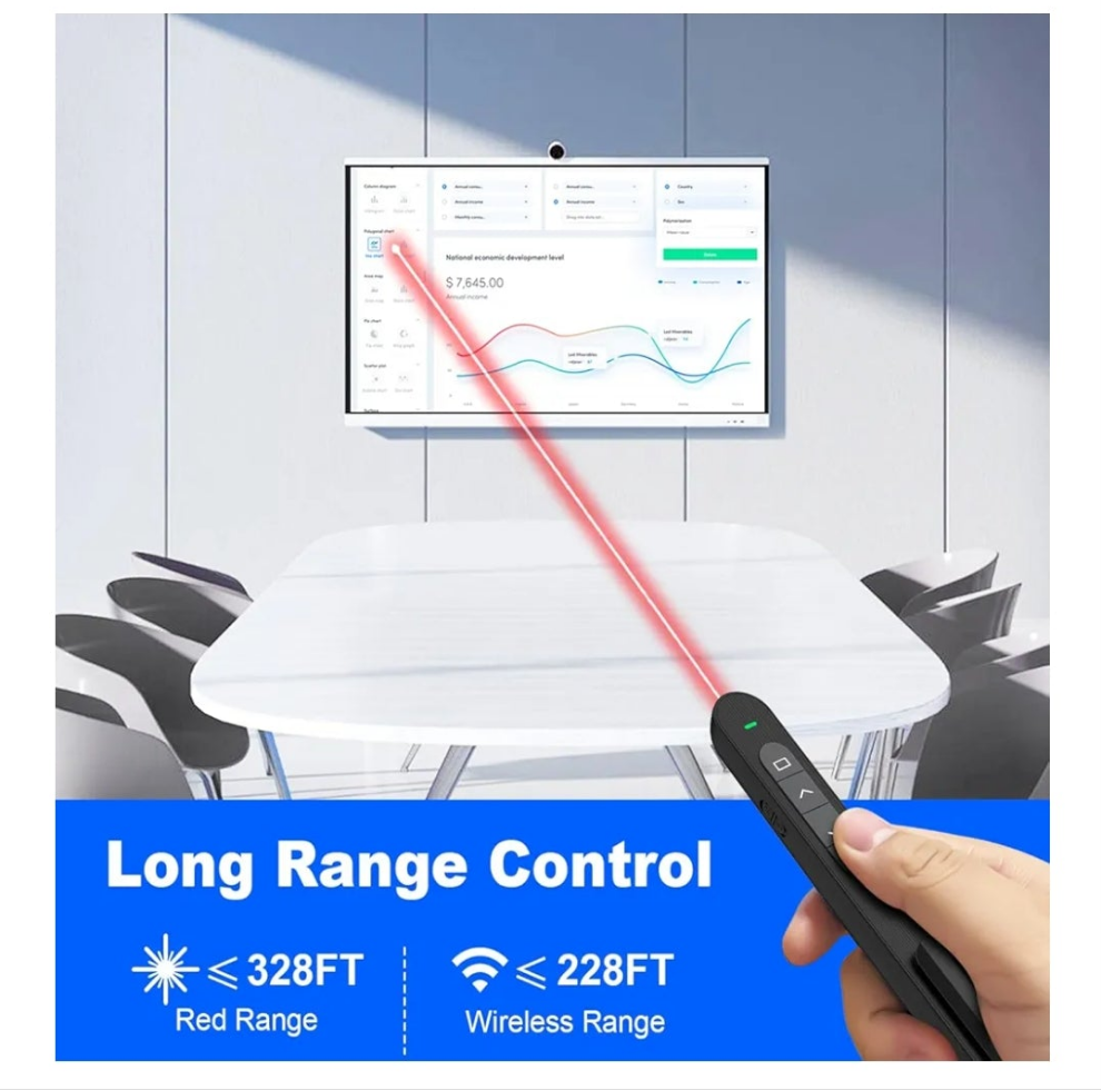 【100M STABLE CONNECTION CONTROL】This wireless presenter remote has a coverage range of up to 328 feet, you can walk out from behind the podium and move around the room, actively talk with the audience, make your lectures more interactive, and enjoy a stable presentation process