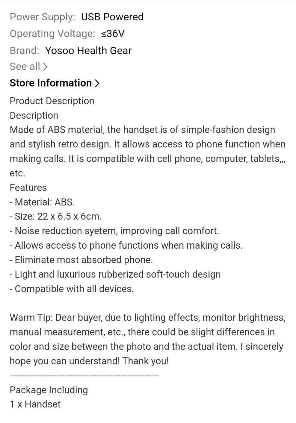 Vintage-Style 3.5mm Handheld Phone Receiver - Anti-Radiation, Noise Reduction, USB Powered - Perfect for Sports Fans & Gifts