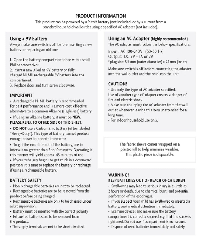 PLEASE NOTE: This product can be powered by a 9-volt battery or by a specific AC adapter. (Battery nor AC adapter included with purchase.) Please read and follow the instructions included in the box to ensure optimal performance.