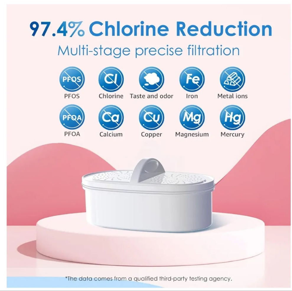 [Dedicated filtration performance]: Using multi-stage water filter technology, this water filter pitcher can effectively reduce chlorine, PFOA/PFOS, odor, iron, and metal ions, tested by a third lab. The main purpose of the Waterdrop pitcher is not TDS reduction.