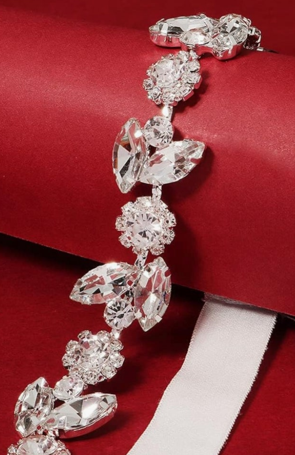 Bridal Gemstone Garter with Stretchy Size-- 15 in ~24 in, suitable for everyone's leg size, easy to put on and take off, comfortable to wear