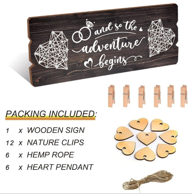 Wedding Engagement Gifts for Women Bride to Be - Couples Wall Picture Hanging Collage Board with Clips and Twine 15.8x6.0 Inches