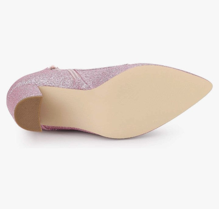 Women's Glitter Pointed Toe Block Heel Halloween Ankle Boots