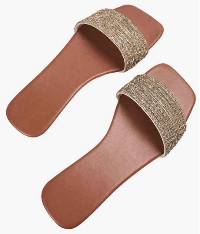 This rhinestone sparkly sandals with ultra-low heels is suitable for your daily commuting and walking, and it is not easy to get tired