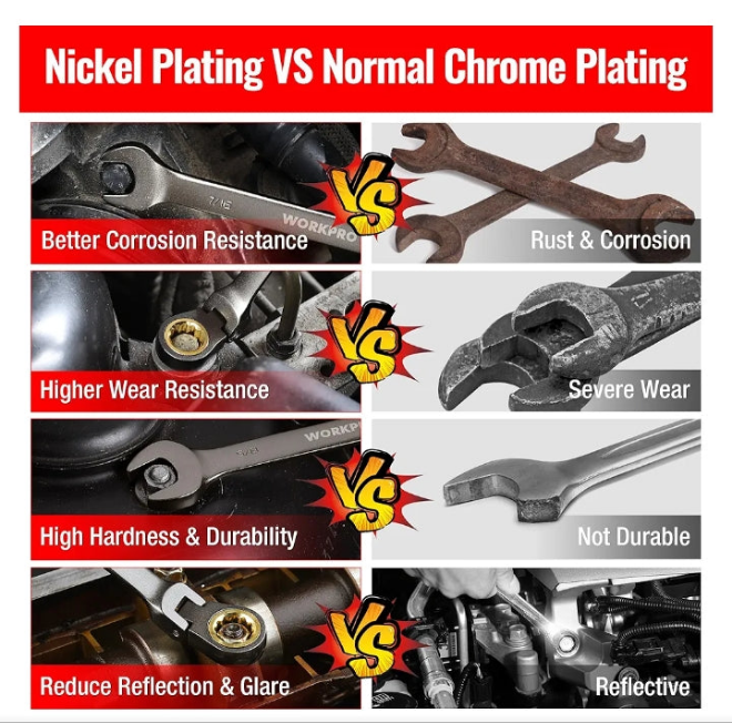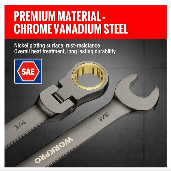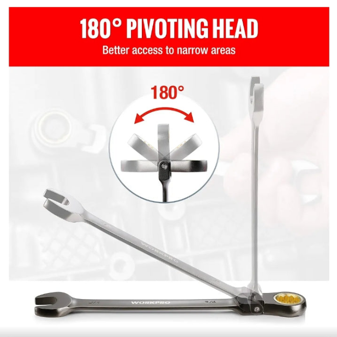 WORKPRO 8-piece Flex-Head Ratcheting Combination Wrench Set, SAE 5/16-3/4 in, 72-Teeth, CR-V Constructed, Nickel Plating with Organizer Bag,