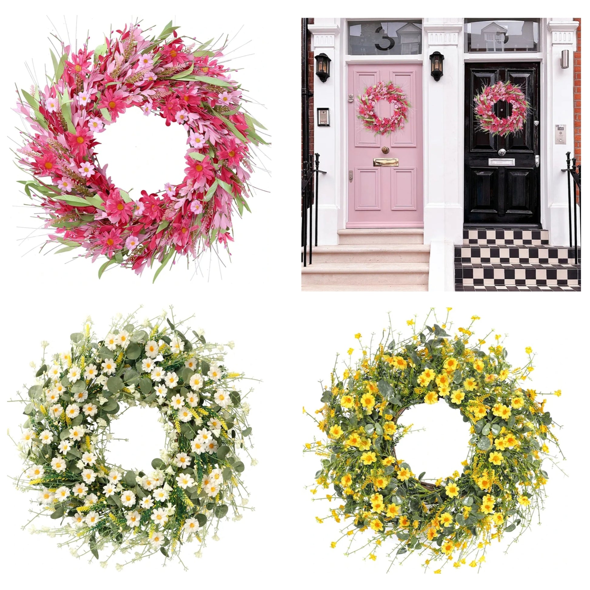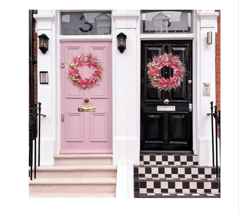 [PREMIUM MATERIAL]: The handmade Valentines Day wreath is made of natural grapevine and wrapped with foam forsythia flowers and daisy in pink. Colorful to decorate any places you like.