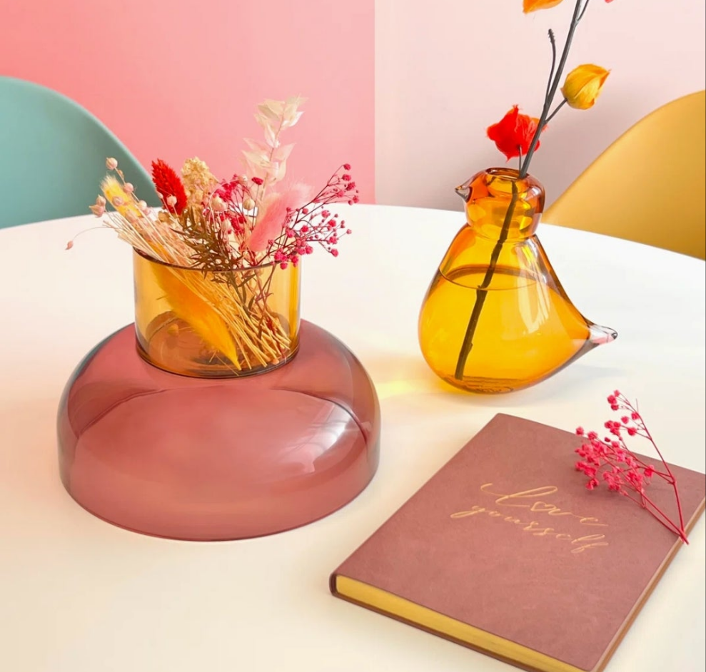 Xl Blue & Pink - Bowl or Small Red & Yellow - Bowl or Small Green & Yellow Bowl for table decor center piece accent piece room decor table decor Glass