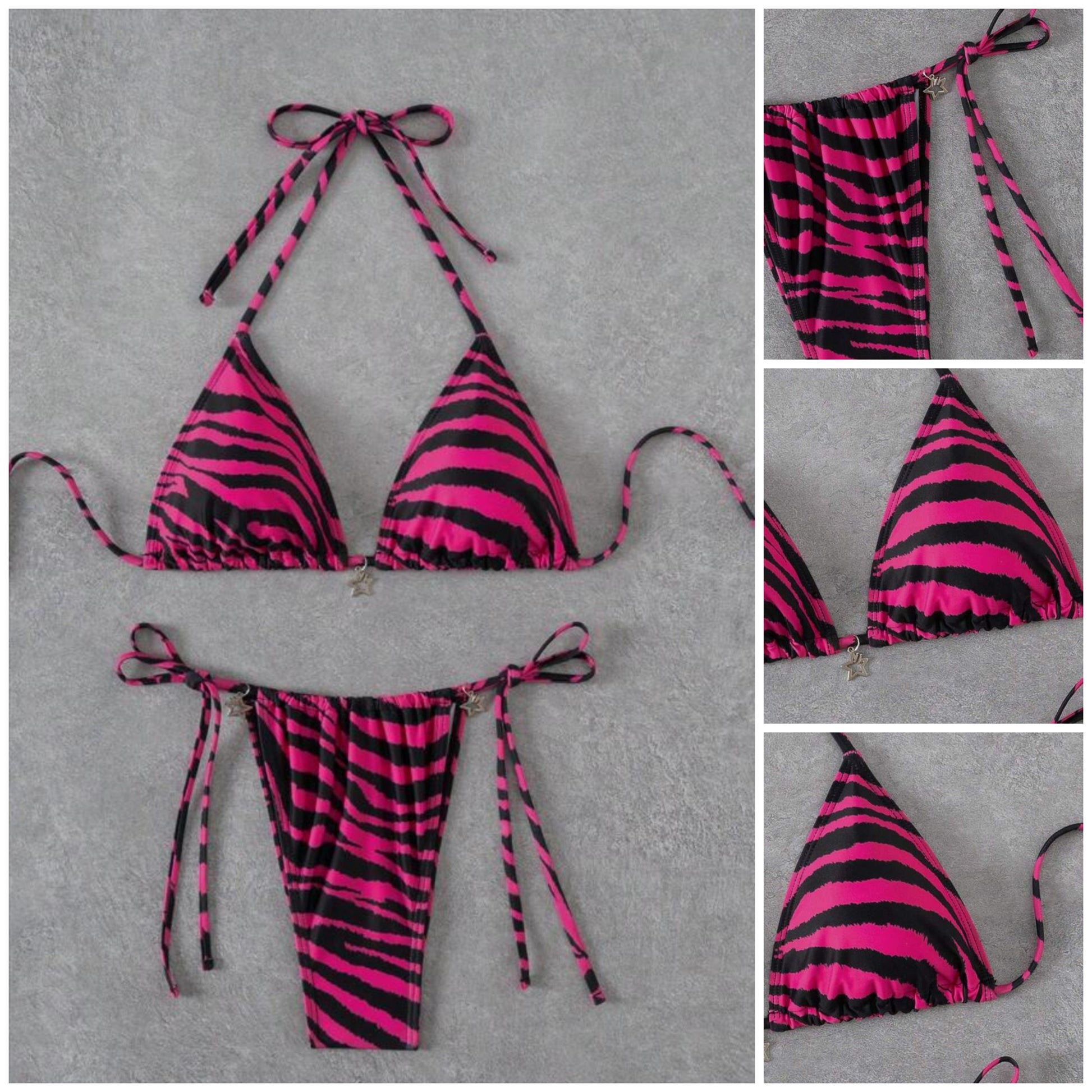Zebra Pattern Star Pendant Bikini Set Simple Fashion Casual Daily, Cocomoney