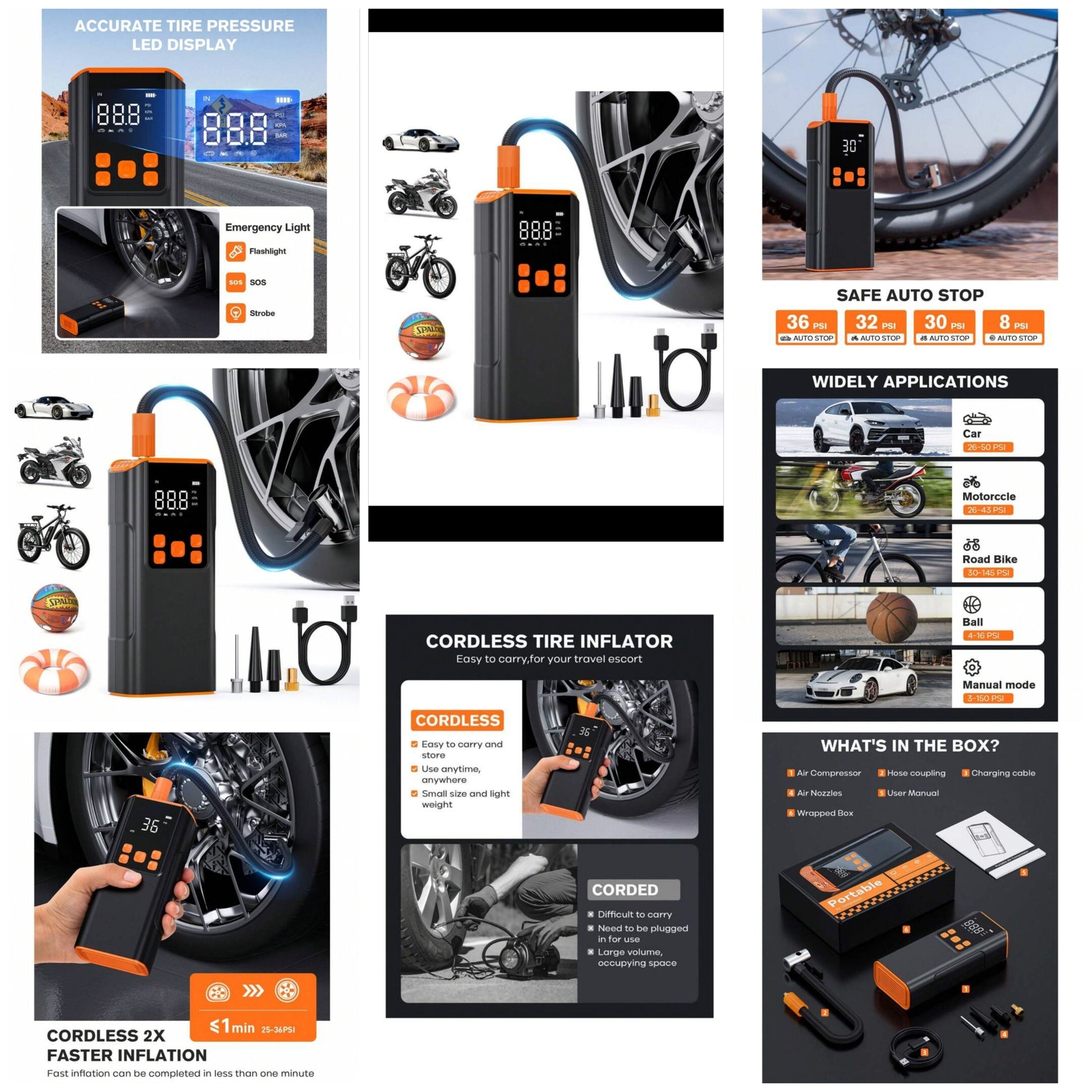Zeee Tire Inflator Portable Air Compressor 150PSI Portable Air Pump 2X Fast