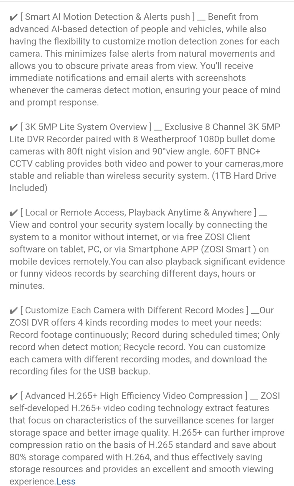 ZOSI ZOSI H.265+ 8CH 5MP Lite DVR Home Security Cameras System With 1TB HDD, 8pcs 2MP Wired Outdoor Bullet/Dome Surveillance Cameras, 80ft Night Vision, Motion Detection, Remote Access